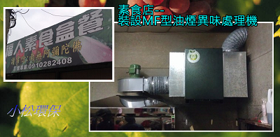小松環保於桃園縣蘆竹鄉的福人素食盒餐,完成裝設一式MF型餐飲業油煙/異味處理設備,安裝後