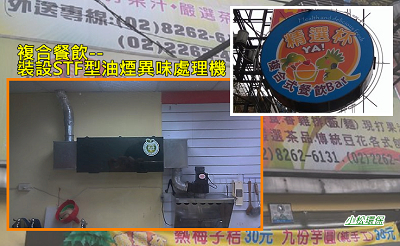 小松環保於新北市土城區的精選杯複合式餐飲店,完成裝設一式STF型餐飲業油煙/異味處理設備,安裝後