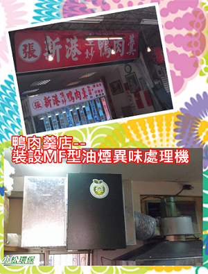 小松環保於新北市板橋區的(張)生炒鴨肉羹,完成裝設一式MF型餐飲業油煙/異味處理設備,安裝後