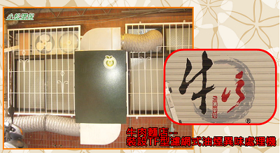 小松環保於新北市新店區的牛十三牛肉麵,完成裝設一式TF型餐飲業油煙/異味處理設備,安裝後
