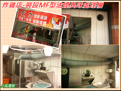 小松環保於新北市樹林區的艾力香雞排,完成裝設一式MF型餐飲業油煙/異味處理設備,本設備免用水電,沒有機械裝置,效率穩定且不易故障,安裝後