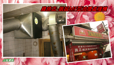 小松環保於新北市中和區的皇家貴族派脆皮雞排店,完成裝設一式MF型餐飲業油煙/異味處理設備,本設備沒有機械裝置,效率穩定且不易故障,安裝後