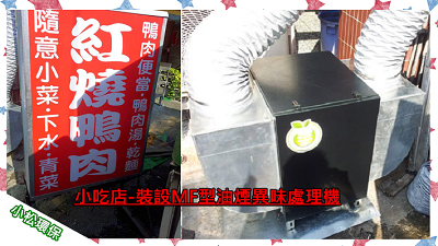 小松環保於嘉義縣大林鎮的紅燒鴨肉店,完成裝設一式餐飲業油煙/異味處理設備,包括一台MF型油煙異味處理機、1HP風機,安裝後