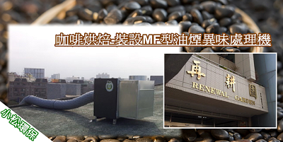 小松環保於嘉義市的再耕園咖啡烘焙,完成裝設一式餐飲業油煙/異味處理設備,該店家採用十公斤咖啡烘焙機,選用MF型油煙異味處理機,本設備免用水電,沒有機械裝置,除油煙效率穩定且不易故障,安裝後