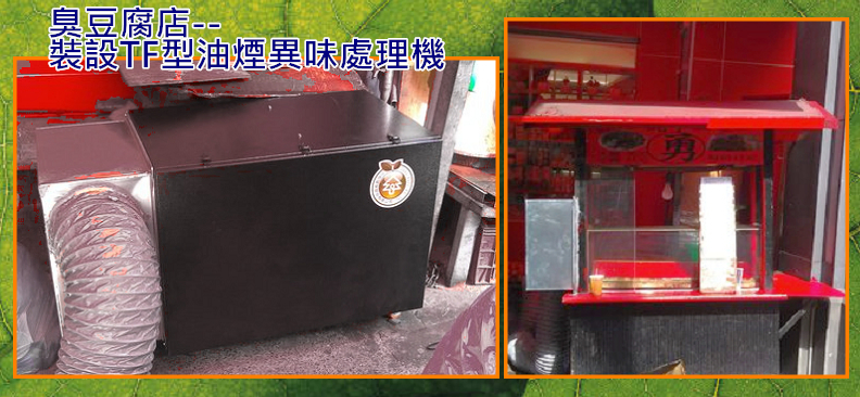 小松環保於台北市通化夜市口的勇臭豆腐,完成裝設一式TF型餐飲業油煙異味處理設備,安裝後