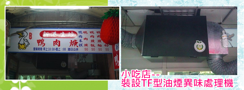 小松環保於台北市中山區民生西路上的翔勝新港生炒鴨肉羹,完成裝設一式TF型餐飲業油煙異味處理設備,安裝後